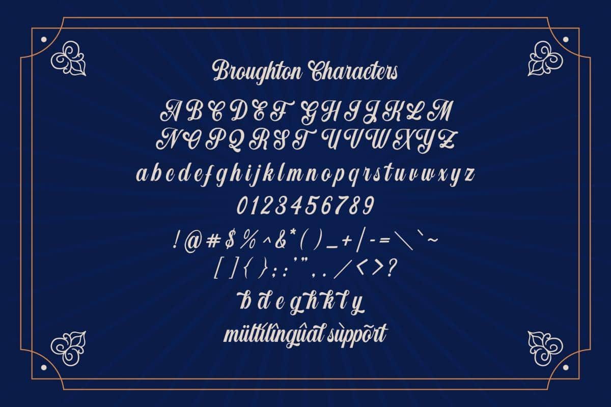 Broughton is consisting of a fashionable handbrush-style script make looks elegant, classy and touch of luxury and stylish.