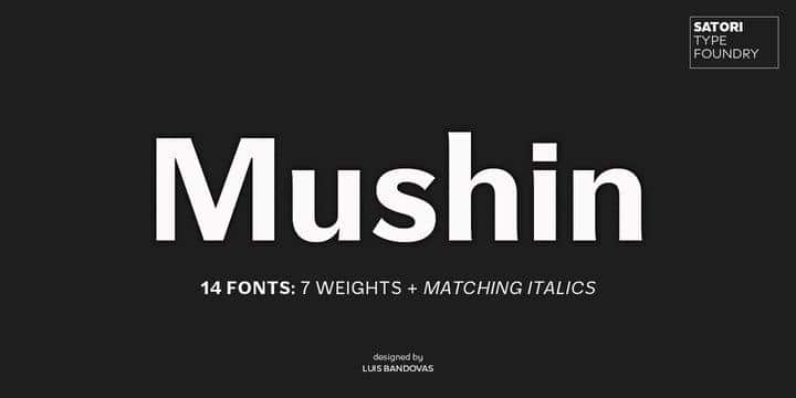 Mushin is a typeface, that comes with 14 fonts, roman and the matching italics, which draws inspiration from the grotesques of the beginning of the 20th century.