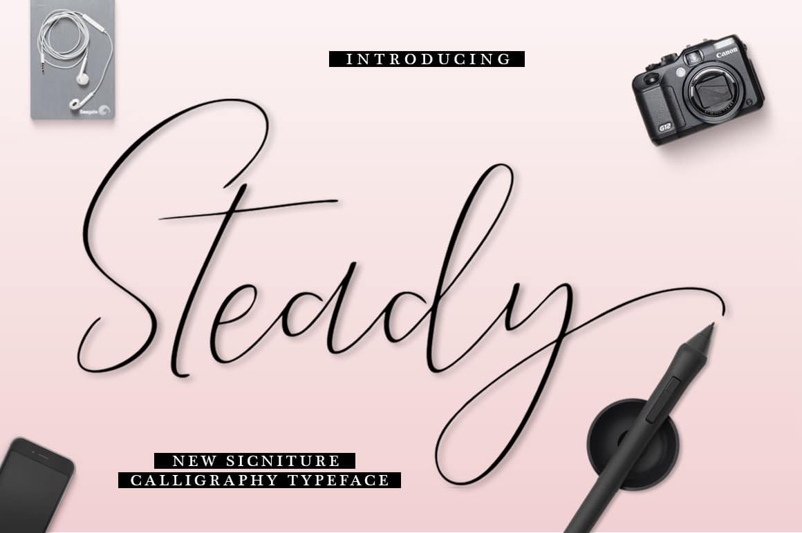 Steady is a script font with a fine handwriting style. Equipped with 450 glyphs. Steady Script, ideal for branding projects, home design, product packaging, business card usage, invitation cards, etc.